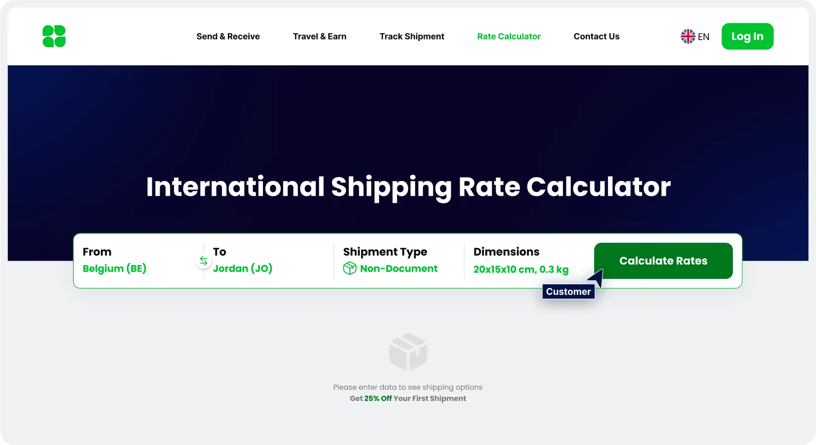 A web platform that enables users to ship documents, packages, and gifts to destinations around the world.
