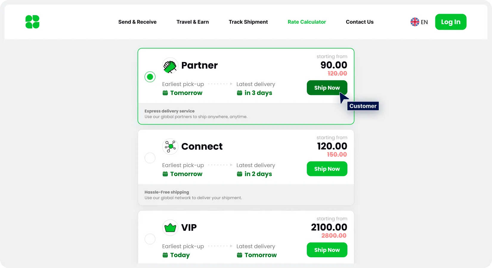 Speed up the process of finding out costs and delivery dates. Earns revenue through a percentage commission on each shipping label sold via the platform.