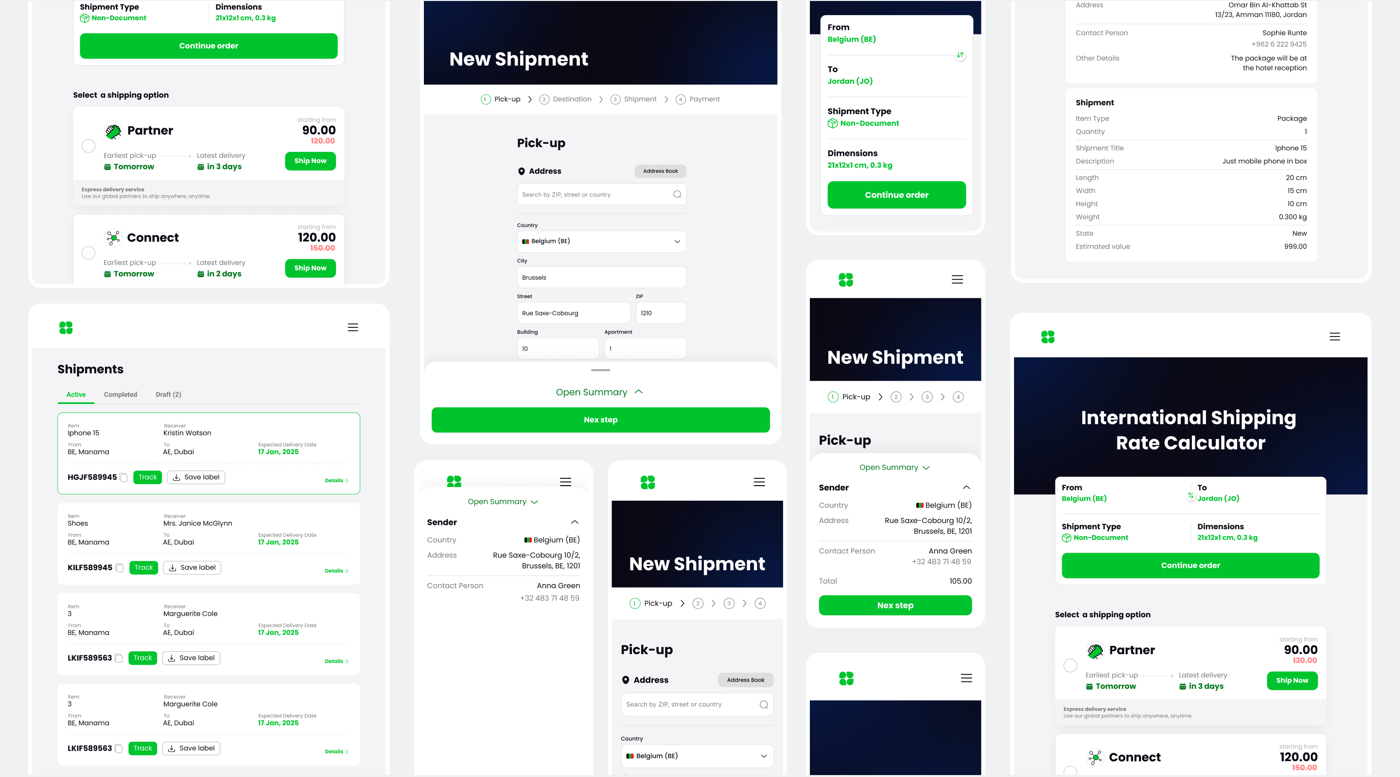 We redesigned the existing mobile experience for the web in Figma, extending the Client’s visual style into fully responsive layouts for desktop, tablet, and mobile. The core purchase and shipping label flow was delivered first to start development, while additional flows such as registration, dashboard, and error states were created in parallel. This iterative design process ensured a smooth adaptation of the mobile app to the web platform, seamless collaboration with developers, and an efficient, agile workflow.